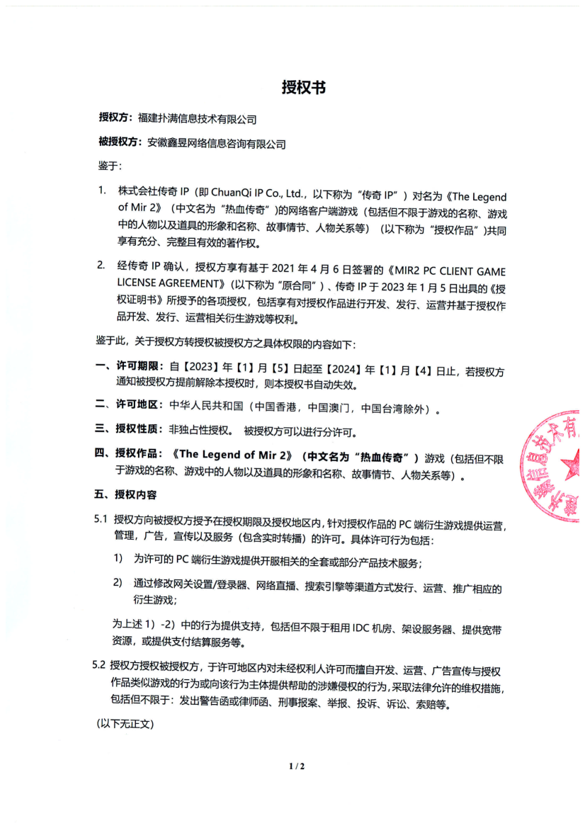 關(guān)于對《The Legend of Mir 2》(熱血傳奇) 衍生品游戲直播的嚴(yán)正聲明